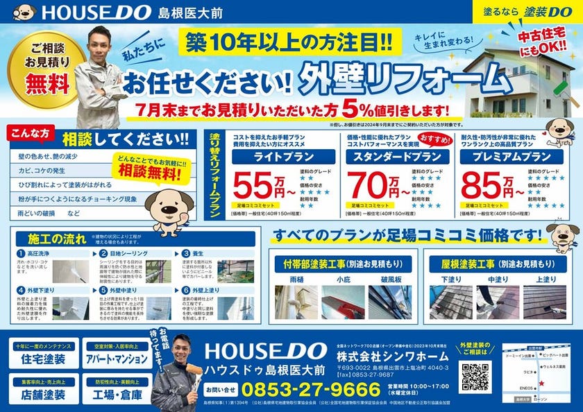 ただいま7月末までにお見積りいただいた方は5%値引きキャンペーン中です!